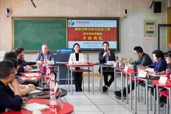 2020年11月16日下午,“浙派名师名校长培养工程”高中英语名师班开班典礼在外国语学院隆重举行。本次破冰之旅由项目负责人骆巧丽老师主持,外语学院院长胡美馨、党委书记俞明祥、院长助理龚奕峰和班主任贾君颖出席会议。