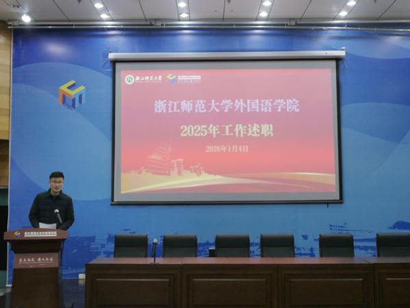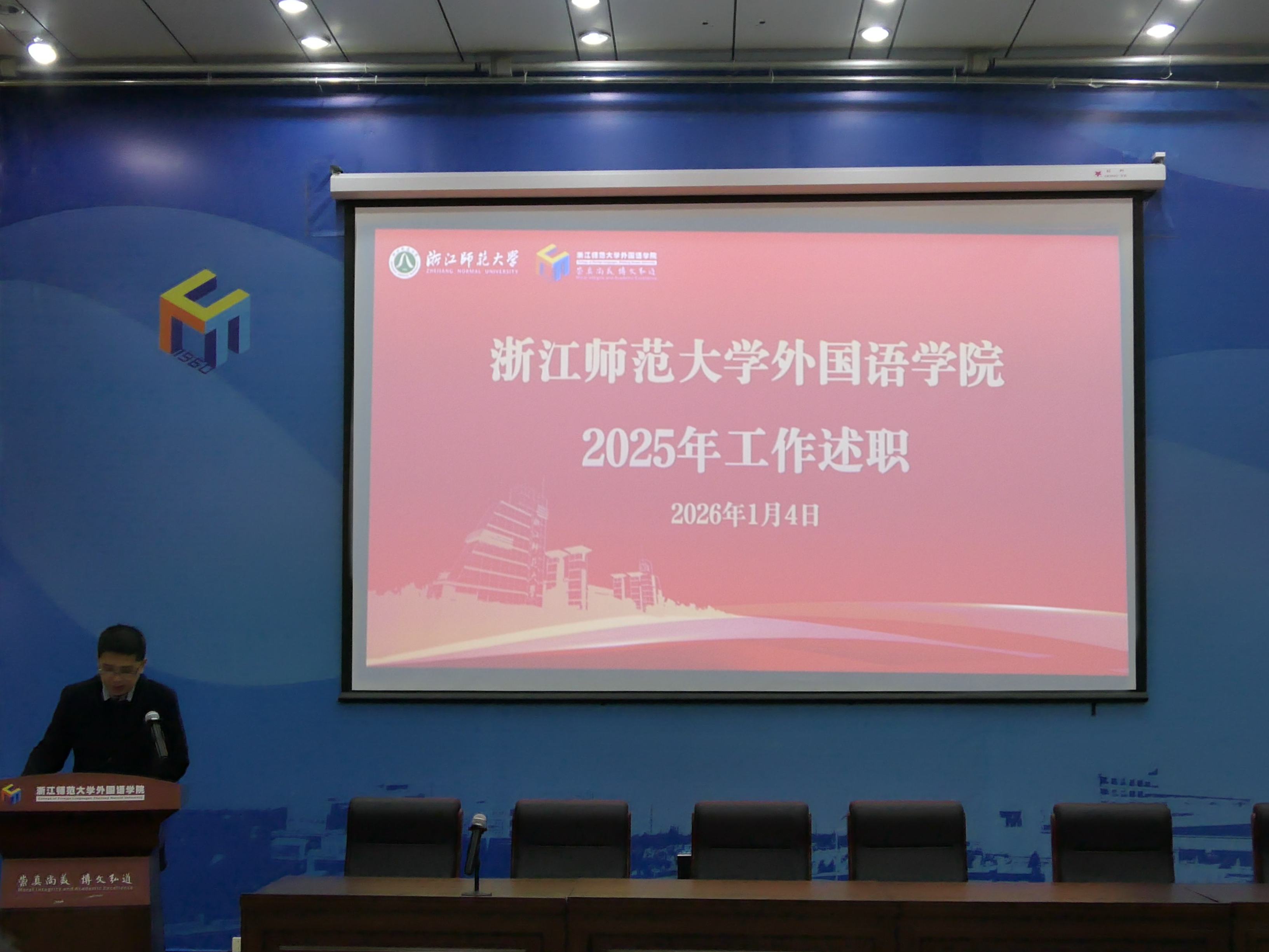 2026年1月4日下午,外国语学院召开教职工大会暨2025年度领导班子述职会。人文社会科学处副处长李康杰、机关党委办公室主任林曼曼代表校考察组到会指导工作。学院领导班子成员、全体教职工参会,会议由院党委书记项伟主持。