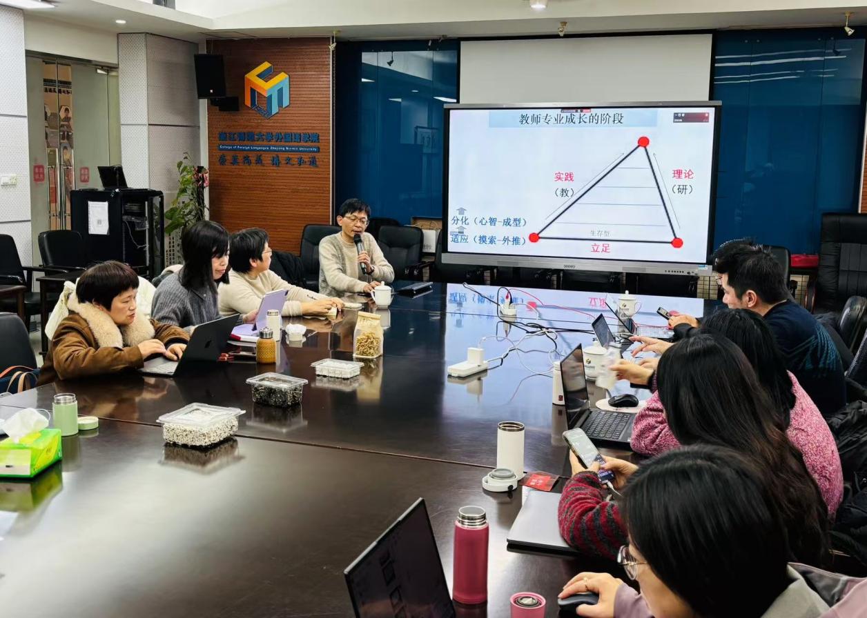 2026年1月21日,“浙派名师·名校长培养工程”高中英语名师集中研训在浙江师范大学22幢一楼连廊会议室顺利举行。本次培训聚焦教师课题研究核心能力提升,特邀金华市教育教学研究中心英语教研员徐钰老师作题为“研究三部曲:从课题到讲座到论文”的专题讲座,以真实实践为根基,系统拆解课题、讲座、论文研究全流程,为参训名师搭建“实践—文献—思考—沉淀”的成长阶梯,助力教师破解课题研究困惑,提升教科研实践能力。