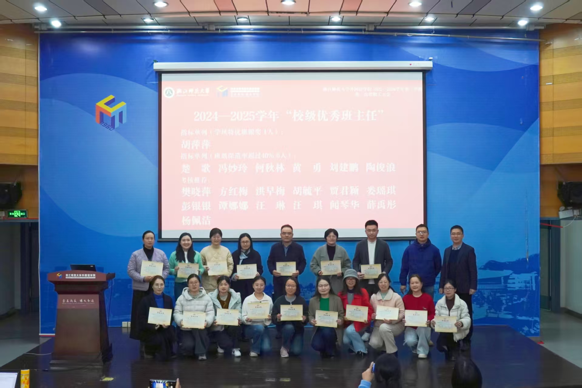 会议对2025年度学院获得“教学能手”“金牌导师”“科研标兵”“运动达人”“优秀班主任”等各项标兵达人称号的老师进行简单而又隆重的表彰,并进行了社团指导老师的聘任仪式。