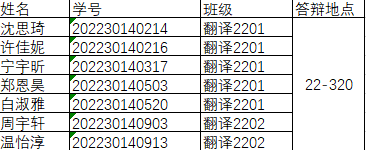 (第一位同学答辩时由第二位同学记录,依次类推。)