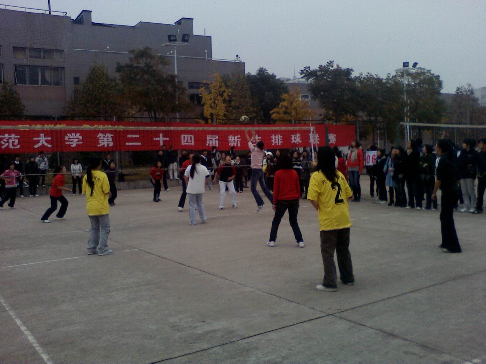在这场球赛中,不时地出现精彩的扣球和发球,使周围的观众不禁发出惊叹声,让大家领略了排球运动的独特魅力。虽然现在甲流肆虐,但排球场上,甲流并未让运动止步,同学们的热情融化了严寒。