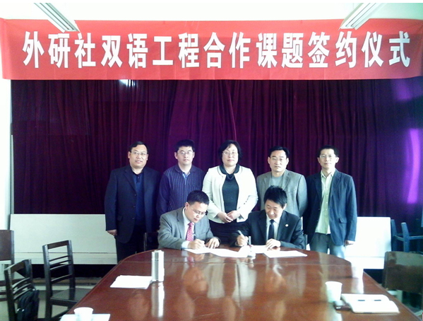 签字仪式在中原工学院外国语学院会议室举行。浙江师范大学外国语学院翻译系主任、典籍英译研究所副所长、“外研社双语工程”项目总负责人蒋林博士和中原工学院外国语学院院长郭万群教授分别代表双方单位签订合作协议。中原工学院副院长杜建慧,人事处处长孙新卿,校生产力促进中心主任、科技处副处长张一风,科技处副处长边亚东,外国语学院总支书记李长林和各系部主任出席了签字仪式。