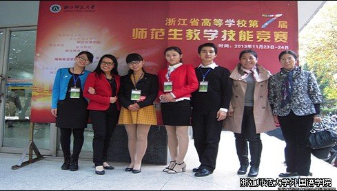浙江省高等学校第七届师范生教学技能竞赛于2013年11月23日至24日在浙江师范大学举行。我院英语专业派出四名选手参赛,经过激烈角逐,罗泽祥、陈洋洋获得二等奖,顾伟红、周圆圆获得三等奖。本届竞赛外语组选手共36人,其中高中组10人、初中组17人、小学组9人。罗泽祥将代表我校参加今年12月7日在浙江师范大学举行的首届全国师范生教学技能竞赛。