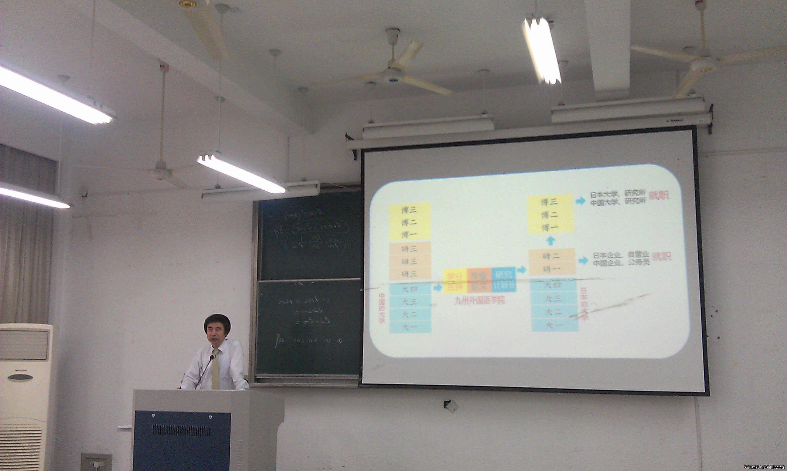 5月8日下午2点,日本九州外国语学院院长马越雪夫给日语专业学生做了“在新形势下日本的考研与就业”主题讲座。日语系主任徐微洁老师、副主任陶魏青老师、外教滨田信敏老师参加了本次讲座。