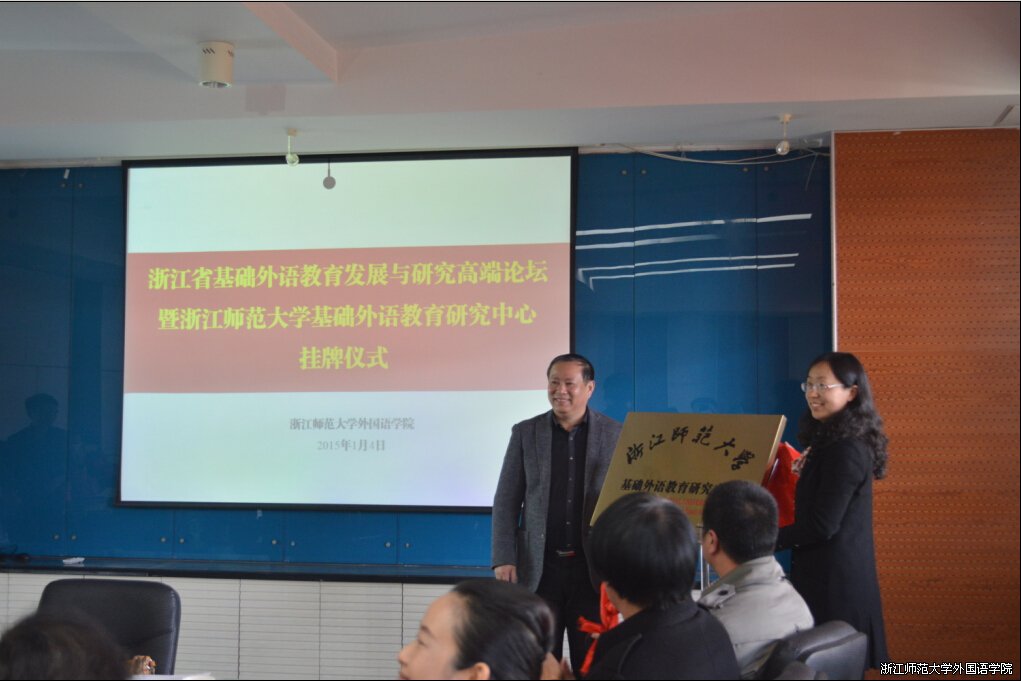 1月4日,浙江省基础外语教育发展与研究高端论坛暨浙江师范大学基础外语教育研究中心揭牌仪式在我院举行。副校长楼世洲出席论坛开幕式致辞并为浙江师范大学基础外语教育研究中心揭牌。
