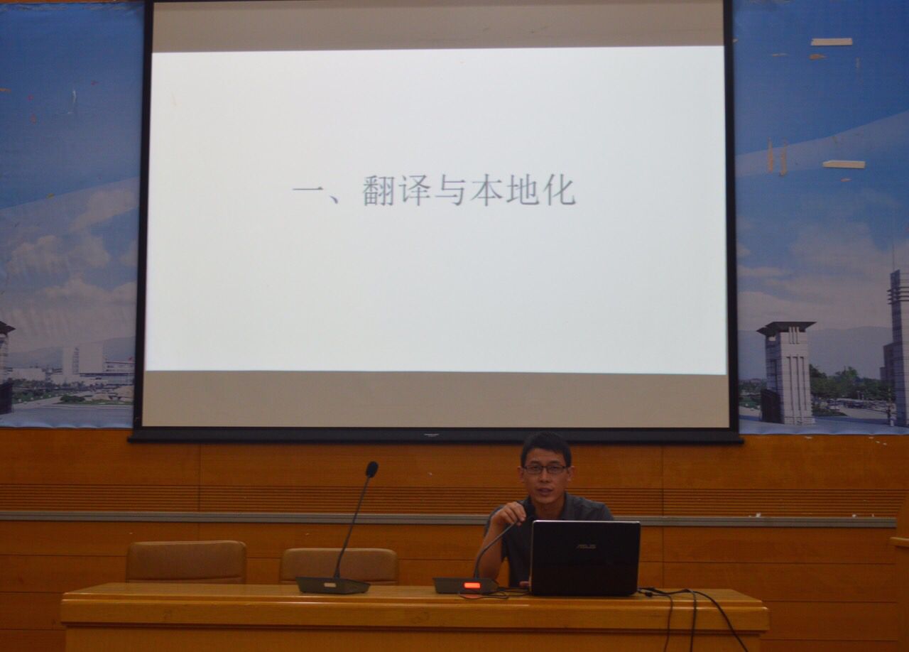 郑江锋,翻译系12届毕业,北京大学计算机辅助翻译(CAT)硕士,现就职于腾讯NBA,主要从事新闻编辑及部分采访和字幕翻译。就CAT专业,郑江峰为大家讲述了翻译与本地化的区别,特别提出本地化的最终结果是给当地人看,需要结合当地的语言文化习惯。CAT专业培养的人才主要是本地化项目经理和本地化工程师,从项目的报价开始到最后的成果上交,需要多方配合,按时完成规定部分的任务,充分利用各种软件工具以及记忆库的资源是工程成功的关键。
