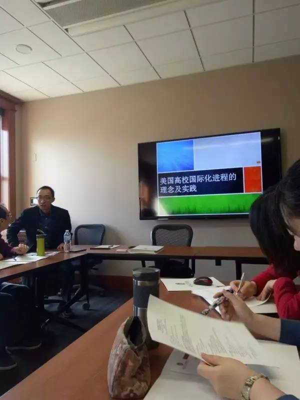 首先,威大教育领导与政策分析系的李惟嘉教授做了题为“美国高校国际化进程的理念及实践”的简短讲座。李教授介绍了教育国际化的六大支柱,即The CIGE (Center for International and Global Engagement) Model for Comprehensive Internationalization:(1) Articulated institutional commitment; (2) Administrative structure and staffing; (3) Curriculum, co-curriculum and learning outcomes; (4) Faculty policies and practices; (5) Student mobility; (6) Collaboration and partnerships. 他认为只有符合这六个支柱特点的课程项目才能被认为是教育国际化项目。而威大在教育国际化方面,尤其在去中心化(decentralization)方面是全美做得最极致的一个大学。各个系部分管教育国际化课程项目的教授在招生和项目管理等方面拥有绝对的自主权,不需要经过学院院长或学校校长的批准同意。