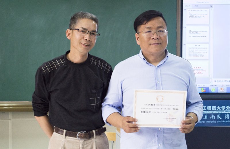 讲座结束时,主持讲座的余泽超教授为王伟博士颁发了讲座证书。
