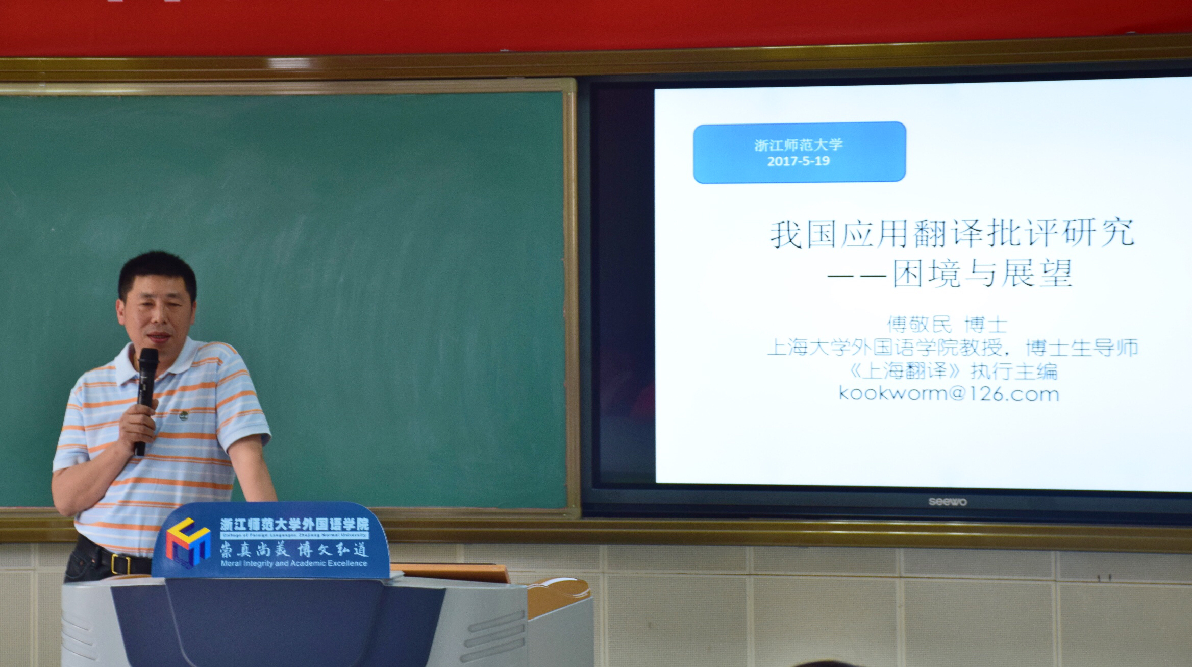 2017年5月19日下午,上海大学外国语学院教授、博士生导师,《上海翻译》执行主编傅敬民为我院师生做了题为“我国应用翻译批评研究困境与展望”的讲座。我院翻译系教师与2016级翻译学方向研究生、翻译硕士聆听了本次讲座。讲座由副院长张生祥副教授主持。