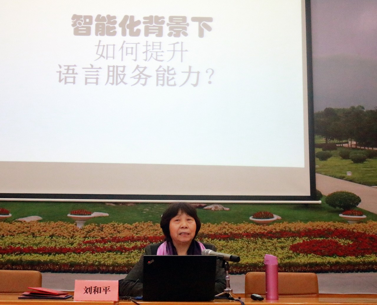 1月3日下午,北京语言大学刘和平教授在我院22幢一楼报告厅做了题为“智能化背景下如何提升语言服务能力”的学术讲座。讲座由翻译系主任李建军老师主持,院长洪明、翻译系、法语系及其他系部的师生聆听了本次讲座。