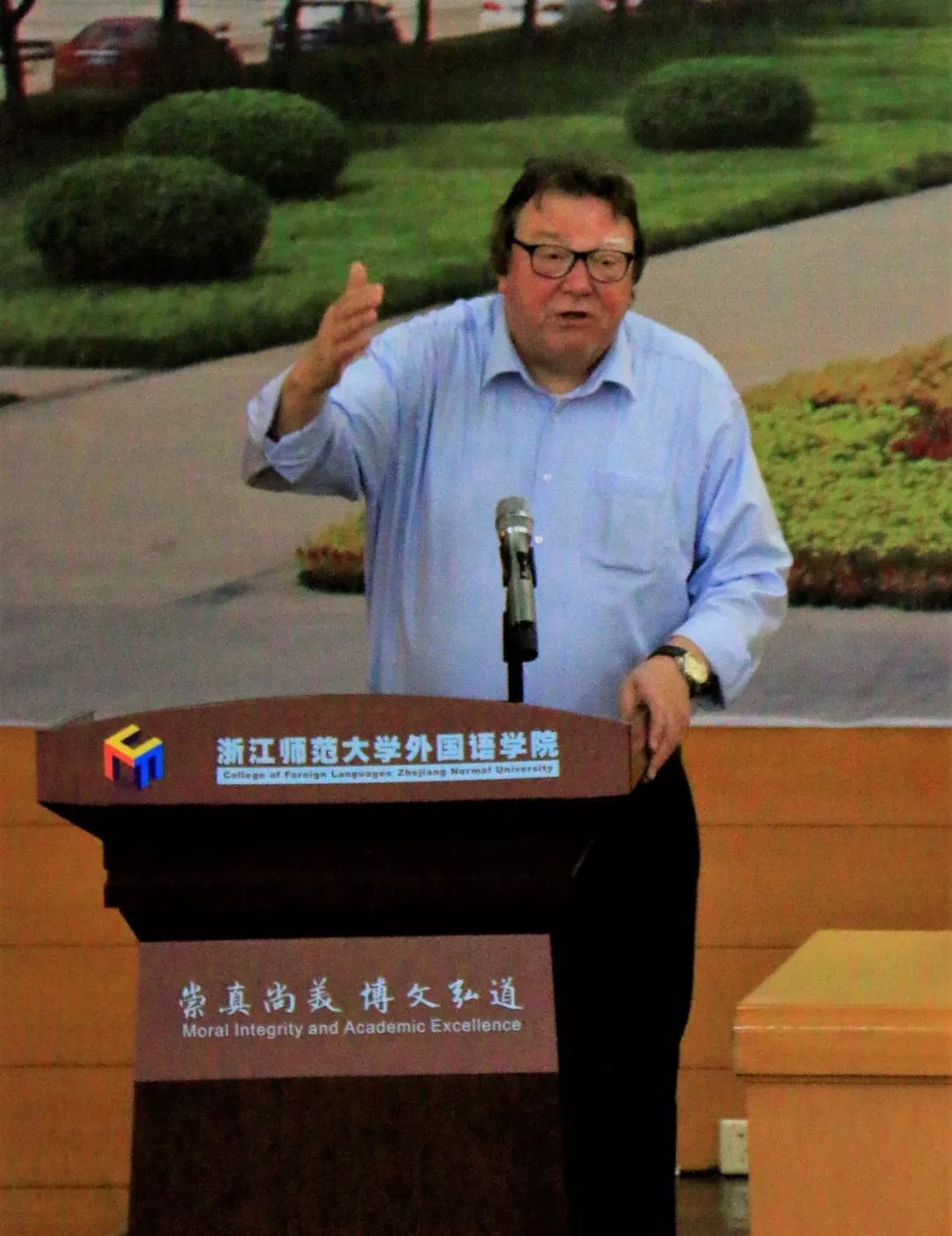 弗兰斯·德莱特教授言语幽默,见解深远,向在场师生呈现了两场极富感染力的讲座。讲座氛围轻松愉快,现场不时响起热烈的掌声。讲座最后的提问环节,他还鼓励在座师生积极提问,并进行了耐心地解答。讲座结束,院长洪明为德莱特教授颁发讲座证书,并合影留念。
