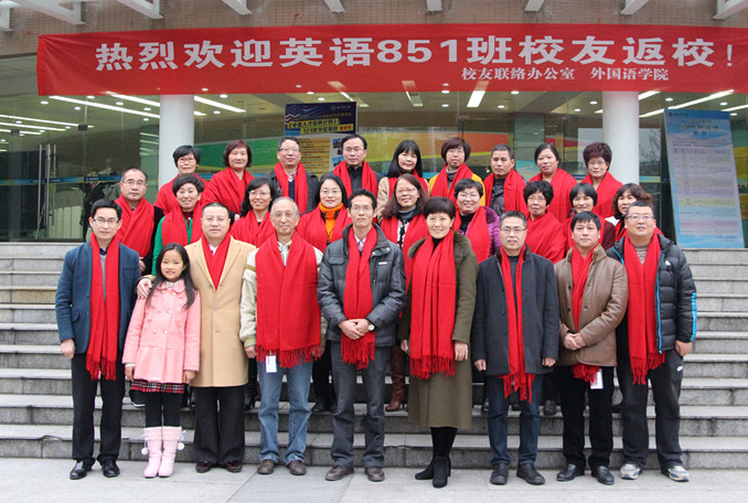 12月19日我院英语851班在外院一楼连廊会议室举办了30周年同学会。校友办主任童卫丰、院党委书记俞明祥出席了此次同学会。出席座谈的还有周林东老师、李旭老师、鲍秀文老师和后来赶来的吴本虎老师。虽然各位同学都是久别重逢,现场气氛却依旧亲切融洽,话语间更满是温馨。