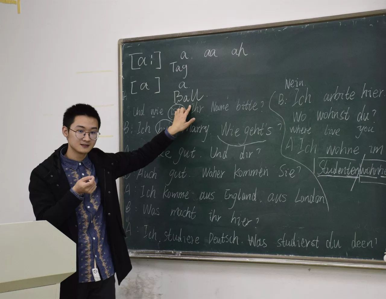 德语是一门严谨的语言,如何让这门严谨的语言别有一番趣味呢?宗鑫同学就带着学员们游历了德国的古典建筑,通过对德国建筑的介绍使学员们领略了别具特色的德国。接着,他着重讲解了德语的字母与发音,还强调了小舌音的注意点,这种由浅入深的教学能有效帮助零基础的学员们打好基础。赵晓燕同学向学员们讲解了两段简单的日常对话,让德语走进学员们的生活。