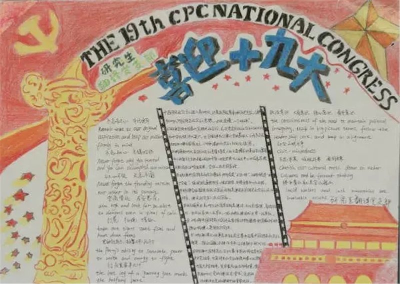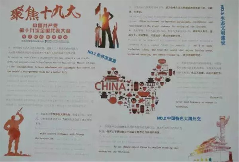 而且,划重点,是结合了我们外院双语特点,跟进时事的十九大双语手抄报!