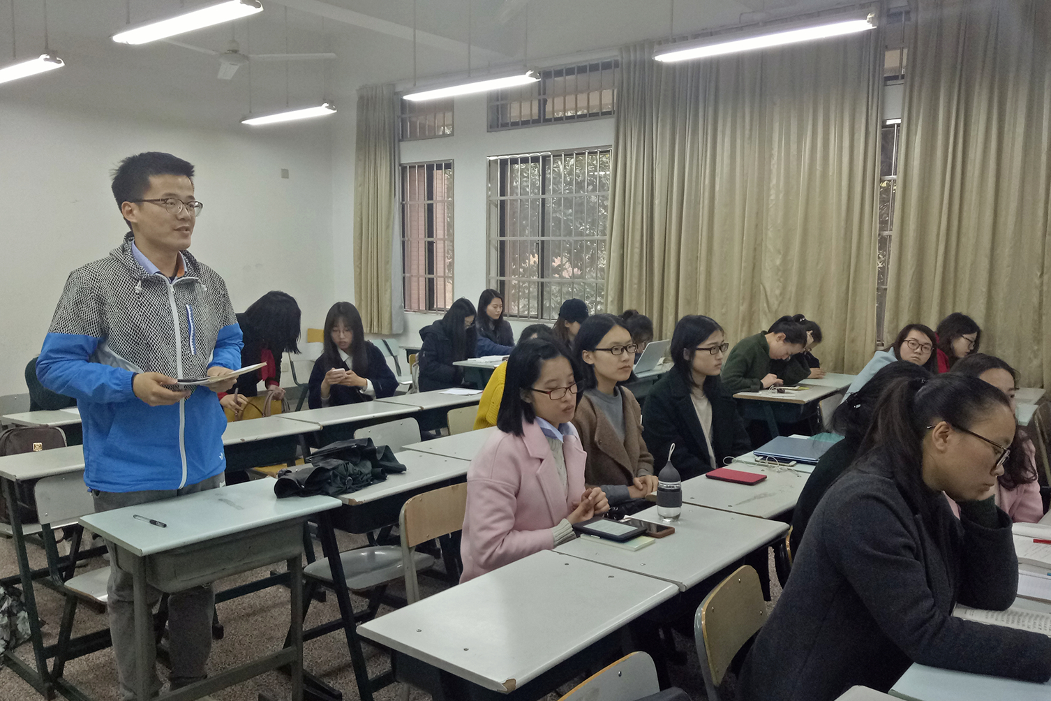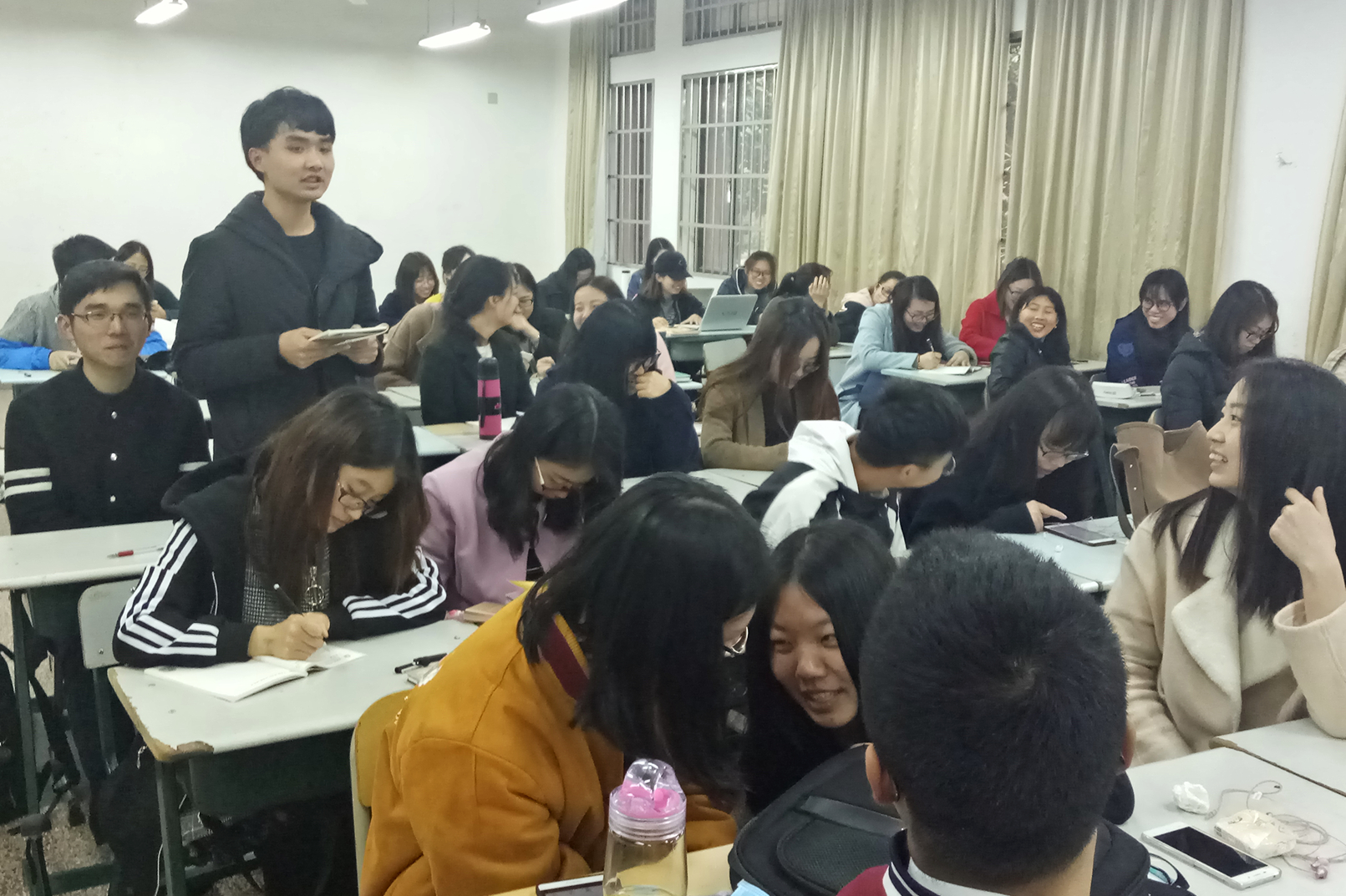 3月31日中午12:40,外国语学院第18次“两学一做”学生微型党课在22幢105教室如期开展。来自全院7个学生党支部的50多名党员一起集中观看了央视原创系列微视频《追寻习近平总书记的初心》(梁家河篇、正定篇、宁德篇),观看后,大家进行了热烈讨论,并以支部为单位进行了观后感交流分享。学院学工办主任沈立煌老师和辅导员陈盼老师一起参与了学习讨论。