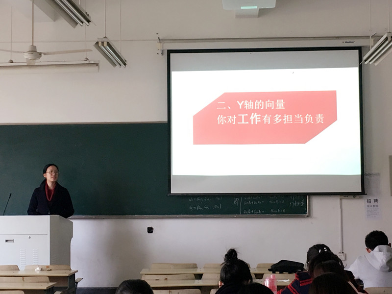 党课伊始,邵云珠同学向在座成员抛出“何为责任”这一问题,并先后引用文学大家歌德名言“责任就是对自己要求去做的事情有一种爱”和文化大儒顾炎武名言“天下兴亡,匹夫有责”给出了问题答案,阐述了党员责任的真谛。响应十三五规划已经吹响党员干部担当作为的集结号,邵云珠同学提出,学生党员干部不妨建立一个三维坐标系,以此来衡量自己在责任的空间体系中是否走得够高、够远、够广。