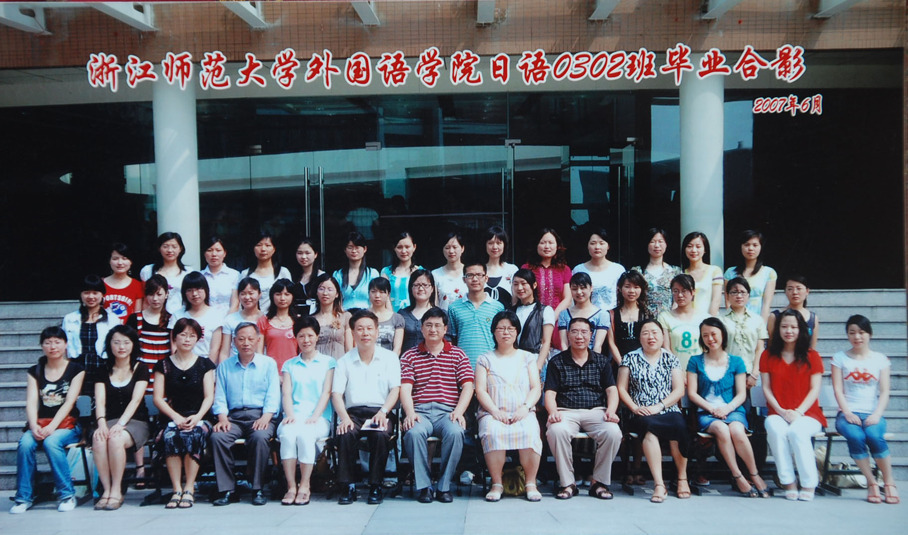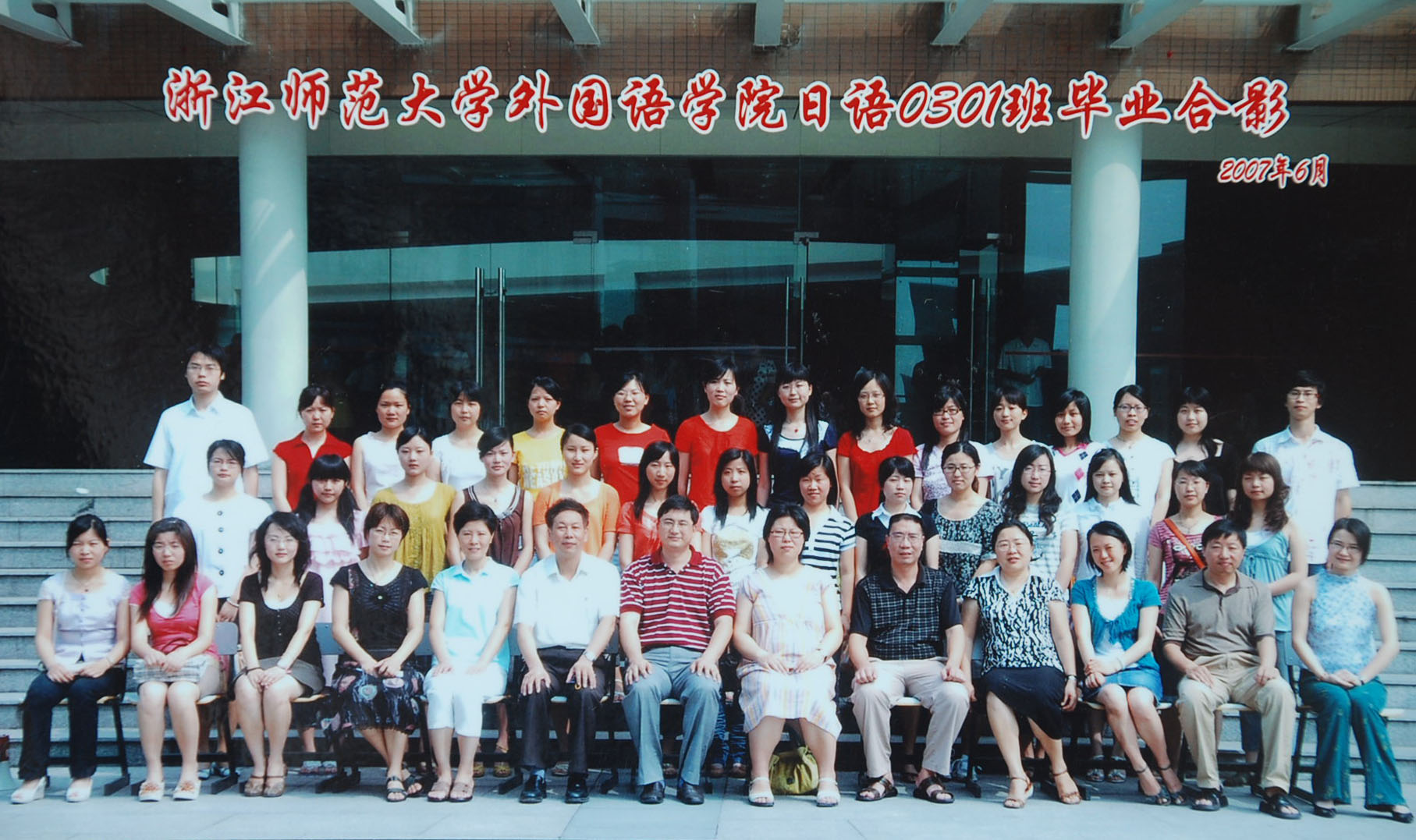 2007 | 日本031班 | 2003 | 4 | 31 | 樊晓萍 | 陈海亚 陈柳青 戴晶晶 董惠静 方璐 | 胡薇 金蓉淑 李海波 李婷 梁佳玮 | 刘韵超 陆盈盈 孟珏 潘宇艳 施晓婷 | 舒姗姗 孙俊 王波 王菁菁 王君临 | 杨英华 应益芬 俞金姝 章和飞 郑珊 | 钟舒佳 周映映 朱红丹 竺玲玲 陆晓峰 杨赟 |