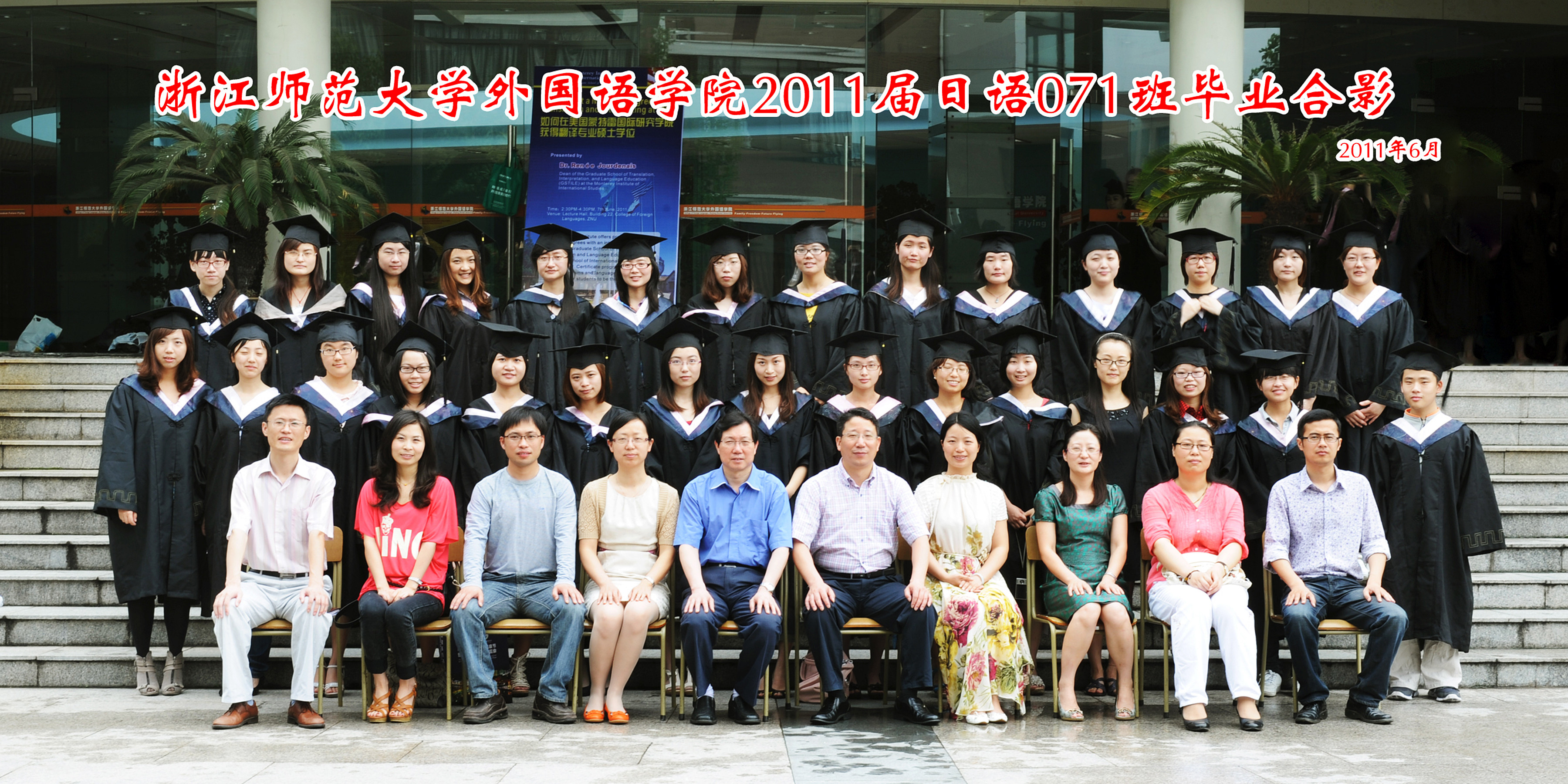 2011 | 日语071班 | 2007 | 4 | 28 | 陶魏青 | 岑波 胡正凤 沈于兰 吴钰虹 郁达丽 | 周青青 陈露琦 蒋慧青 宋晓菁 肖春 | 张晶晶 余祎延 陈园 李佳妮 汪丹丹 | 徐桂飞 章梦盼 徐茹 储佳 励彤丹 | 王海鹏 许蓓 赵凤霞 何雪莉 莫春燕 | 闻丽丽 叶佳菁 郑蓓蓓 |
