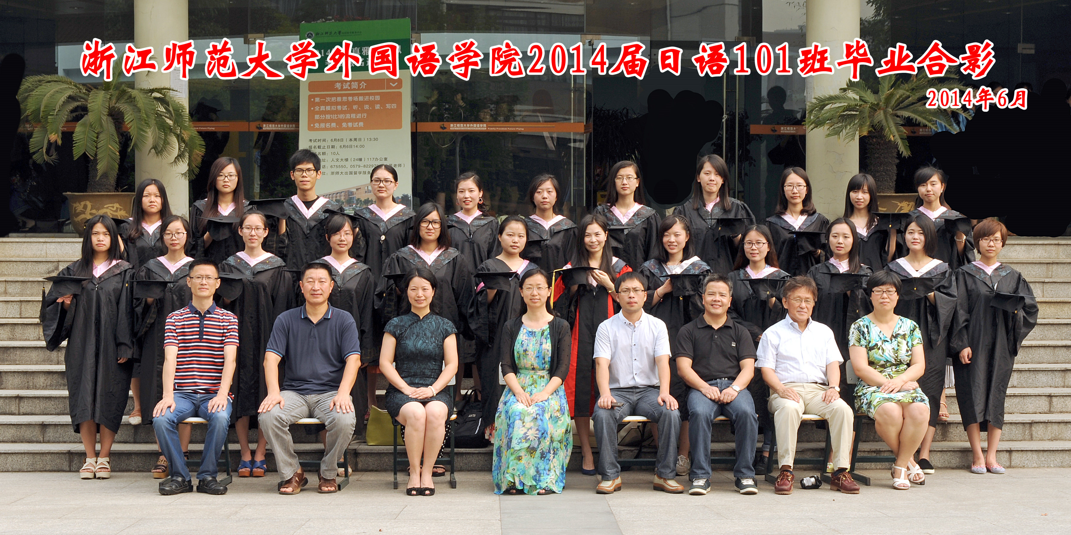 2014 | 日语101班 | 2010 | 4 | 22 | 马一川 刘曼 陶魏青 | 翁幸炯 周娜 曹凯瑜 曹颖婷 陈曦 | 池瑶瑶 傅森燕 郭枫林 何燕萍 黄一楠 | 蒋盈飞 林敏敏 潘苏杭 任潘晨 邵清波 | 孙婷婷 童晓媛 王琼 叶晨楠 章燕娜 | 叶勋 陈芳英 |