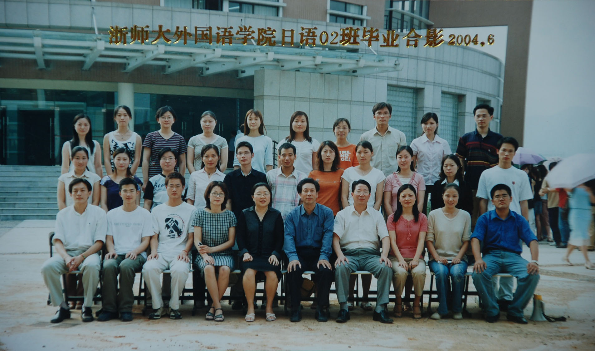 2004 | 日本001班 | 2000 | 4 | 30 | 包央 | 鲍秀萍 陈园园 陈瑾 程美君 丁志龙 | 樊晓萍 费丽利 冯前 何晓艳 蒋幼幼 | 金兰兰 李霞 陆海燕 潘吉玲 寿舒舒 | 万智慧 王梁敏 王亚嫩 王智琴 夏晓云 | 徐媛媛 杨伊琴 俞玲莉 章斌 周帅 | 朱文杰 朱哲莹 滕彩君 曾淑苑 梁芳 |