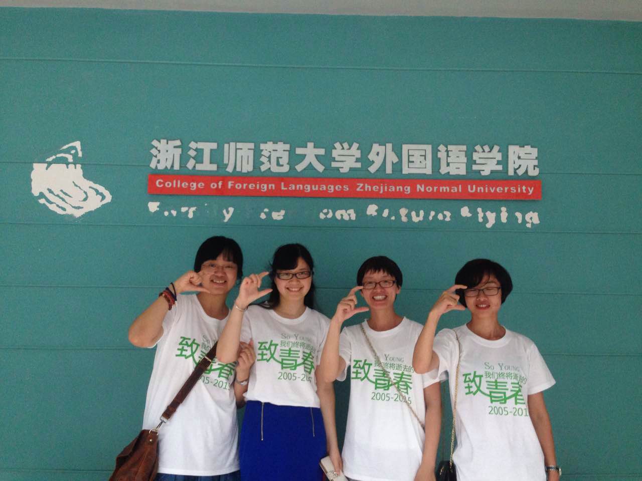 21世纪的第一个金秋十月,十一正逢中秋的大好日子,皓月当空,星光漫天,师大处处回荡着歌声与笑声。这是浙江师范大学45周年校庆大型广场文艺演出的现场,我们是一群刚刚军训完的大一妹子,是构成演出现场恢弘背景的小小一分子。那时的我们并没有完全融入到这喜庆之中,只是在一旁静静地聆听着师大波澜壮阔的发展历史,憧憬着我们即将一起走过的四载年华。我们在绚烂烟花下,轻轻许愿:毕业后第一年的50周年校庆,约吗?