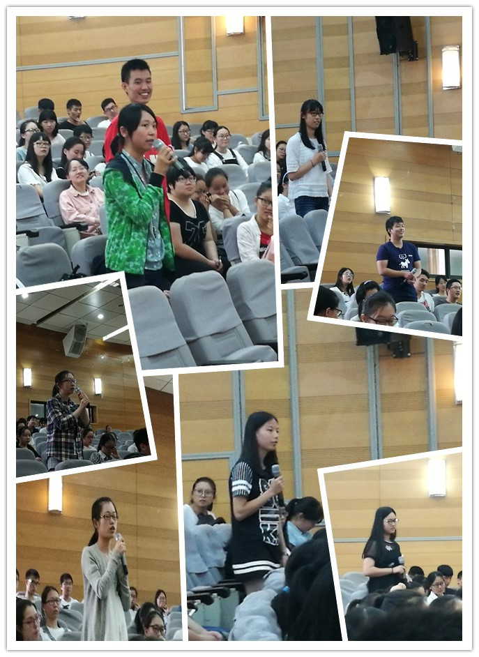 在四位老师讲话结束之后,便是各位同学提问的时间,同学们在考研、就业、口音、出国留学、交换生等方面提出了很多问题,四位老师都一一给予详细的解答。老师们的解答让我们在接下来的学习中有了更清晰的计划和目标,可以更坚定地朝着自己的方向努力。