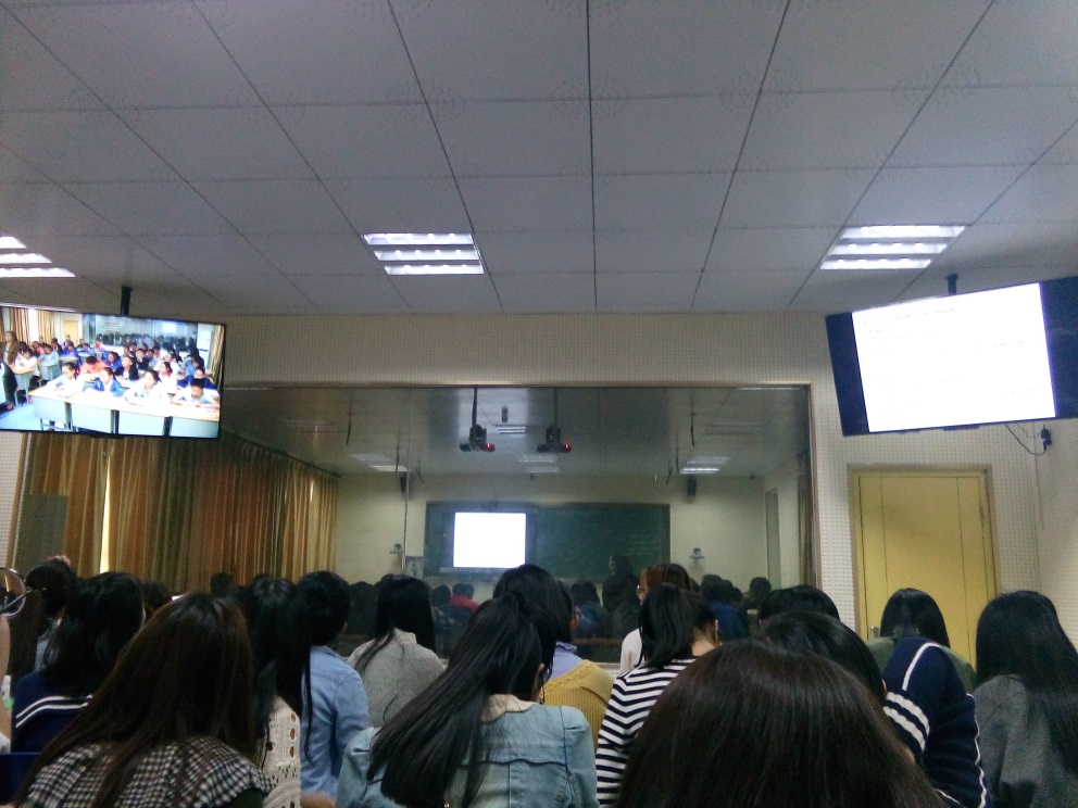 4月21日,作为在金四中集中见习的最后一天,王洁老师,朱海霞老师,王瑶老师,吴新艳老师、吴惠贞老师和汤哲婷老师特意为大家呈现了听说、读写、语法等各种不同的课型。一间狭小的听课教室容纳了八十多位见习生(包括婺外),但这并未影响到大家高涨的听课热情。同学们全神贯注地盯着两边的屏幕,认真记录下教师在课堂中的教学语言、教学活动、板书等动态。通过一天的观摩,大家对各种课型的教学环节与内容有了更加直观和深入的了解。