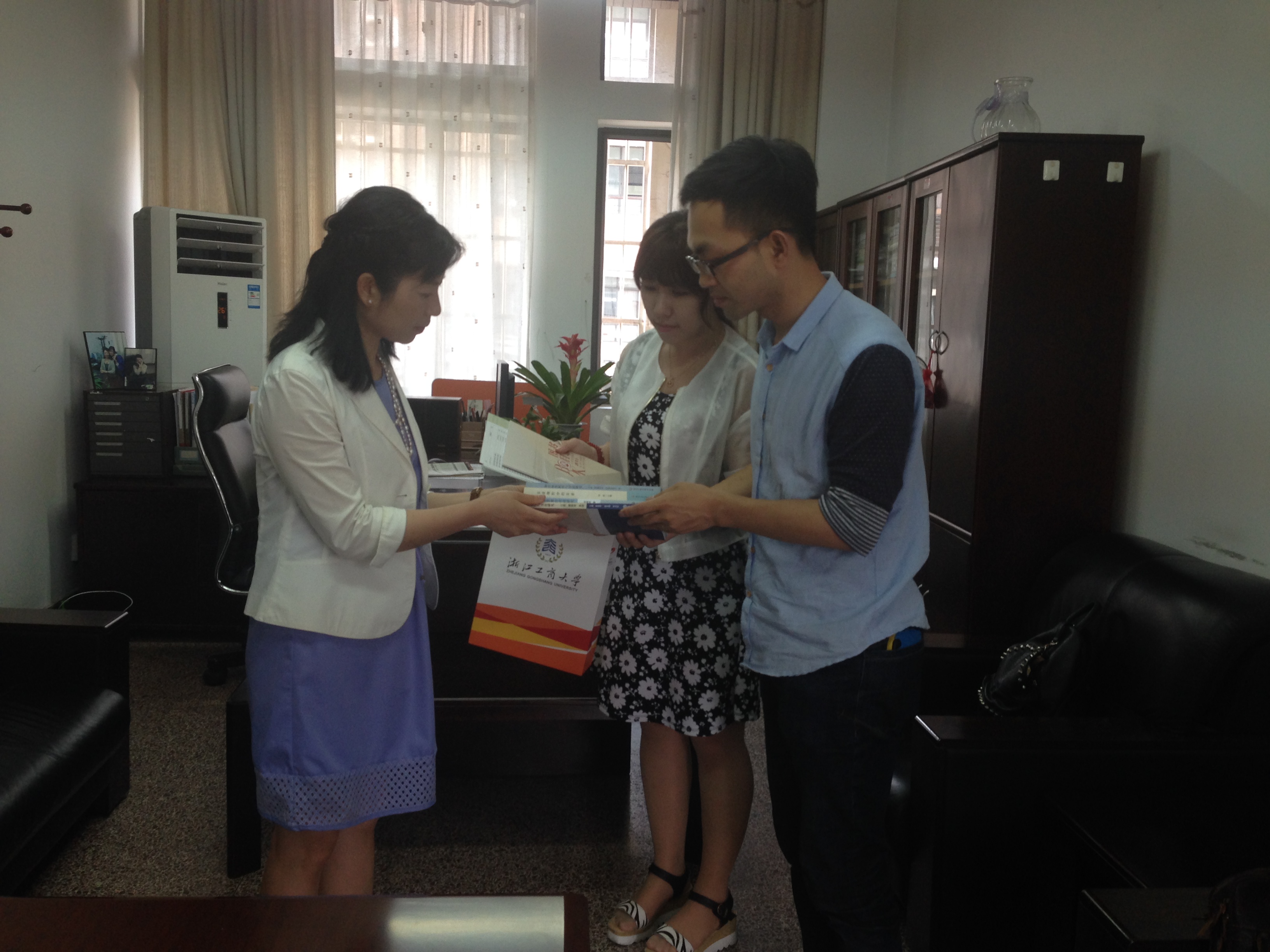 6月12日下午,浙江工商大学出版社外语编辑部主任罗丁瑞先生、日语编辑姚媛女士专程拜访我院日语系。罗丁瑞先生和姚媛女士详细介绍了图书的出版流程、选题申请、立项签约、编辑审稿、版税稿酬等内容,并展示了浙江工商大学出版社近年来推出的与日语相关的丛书与教材。同时,他们还特意给日语系赠送了部分图书。