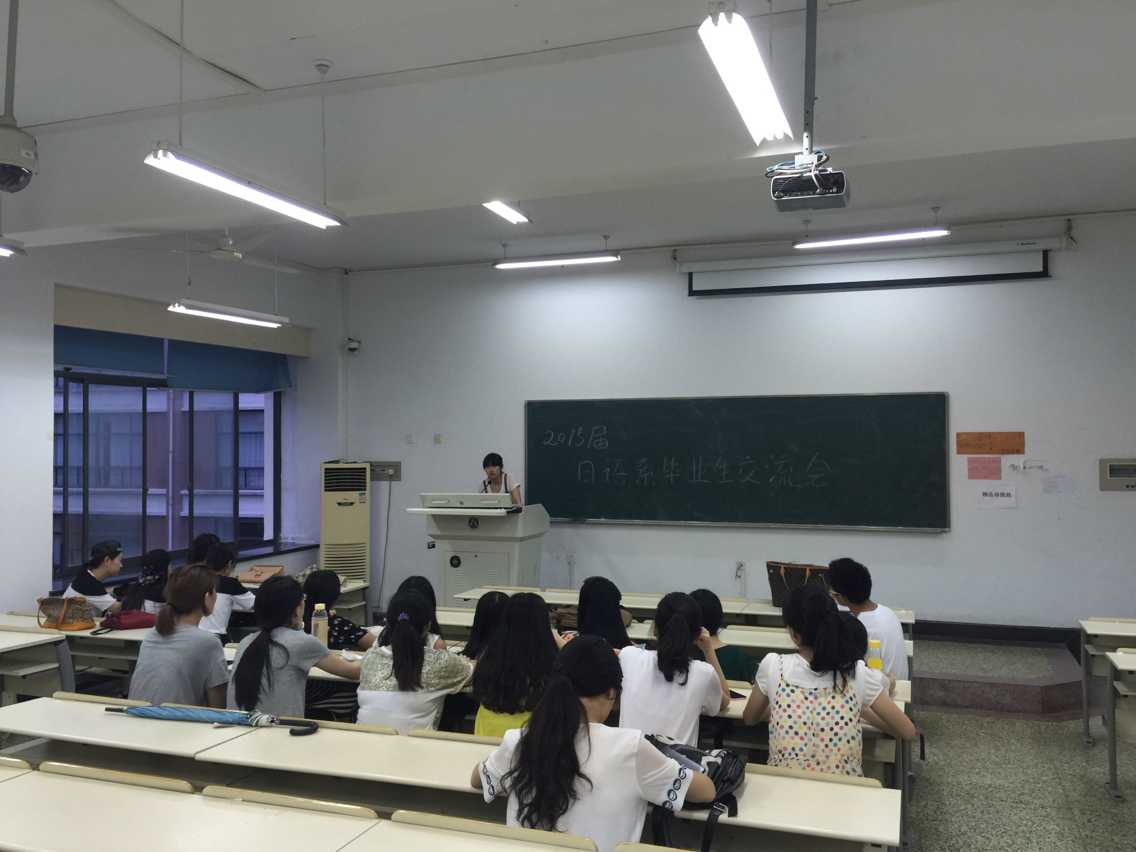 6月17日晚,日语系2015届毕业生就业考研交流会在25幢403教室举行。交流会由日语系副主任陶魏青老师主持,毕业班班主任李沛老师、日语系毕业生代表,日语系2012级学生参加了本次交流会。