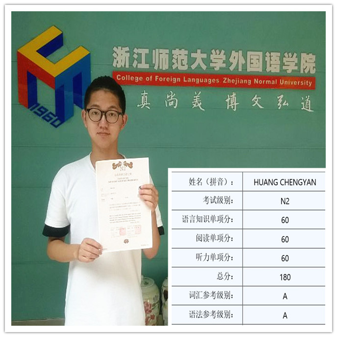 8月26日,国际日本语能力考试(JLPT)成绩揭晓。我院日语系2013级学生在国际日语能力考试二级(一级为最高级)中创下通过率100%的佳绩。特别值得一提的是,黄成焱同学在本次考试中取得了满分180分的好成绩。当问及黄成焱同学的学习经验和感想时,他首先感谢了日语系教师对他的指导和帮助。同时,他分别就文字词汇、文法、阅读、听力四个方面给学弟学妹们提出了自己的建议。他建议使用权威出版社的最新辅导书,勤动笔多摘录,广阅读提速度,不畏难多练耳,静下心巧应战。