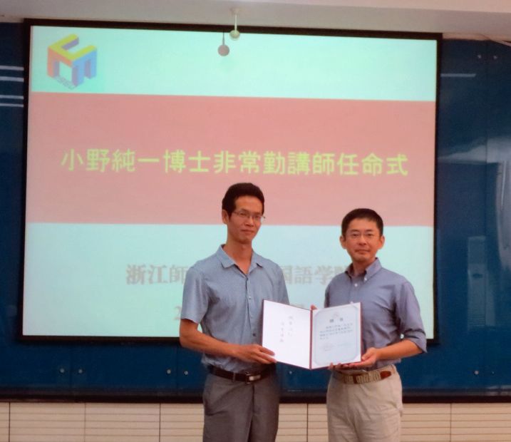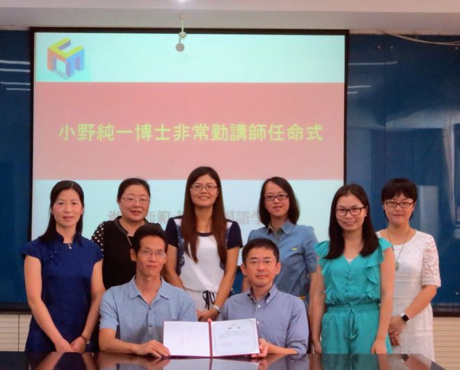 9月11日上午,我院在一楼连廊会议室举行了兼职教师聘任仪式,聘任日语系原外教小野纯一先生为校兼职教师,聘期4年。小野纯一先生毕业于日本名古屋大学,现为日本中京大学和日本名城大学教师,从事日语教育工作多年。小野纯一先生在名古屋大学攻读博士期间赴我院日语系任教2年(1998-2000年),离任后仍心系我院,每年以开设讲座、赠送图书等多种方式回馈我院。