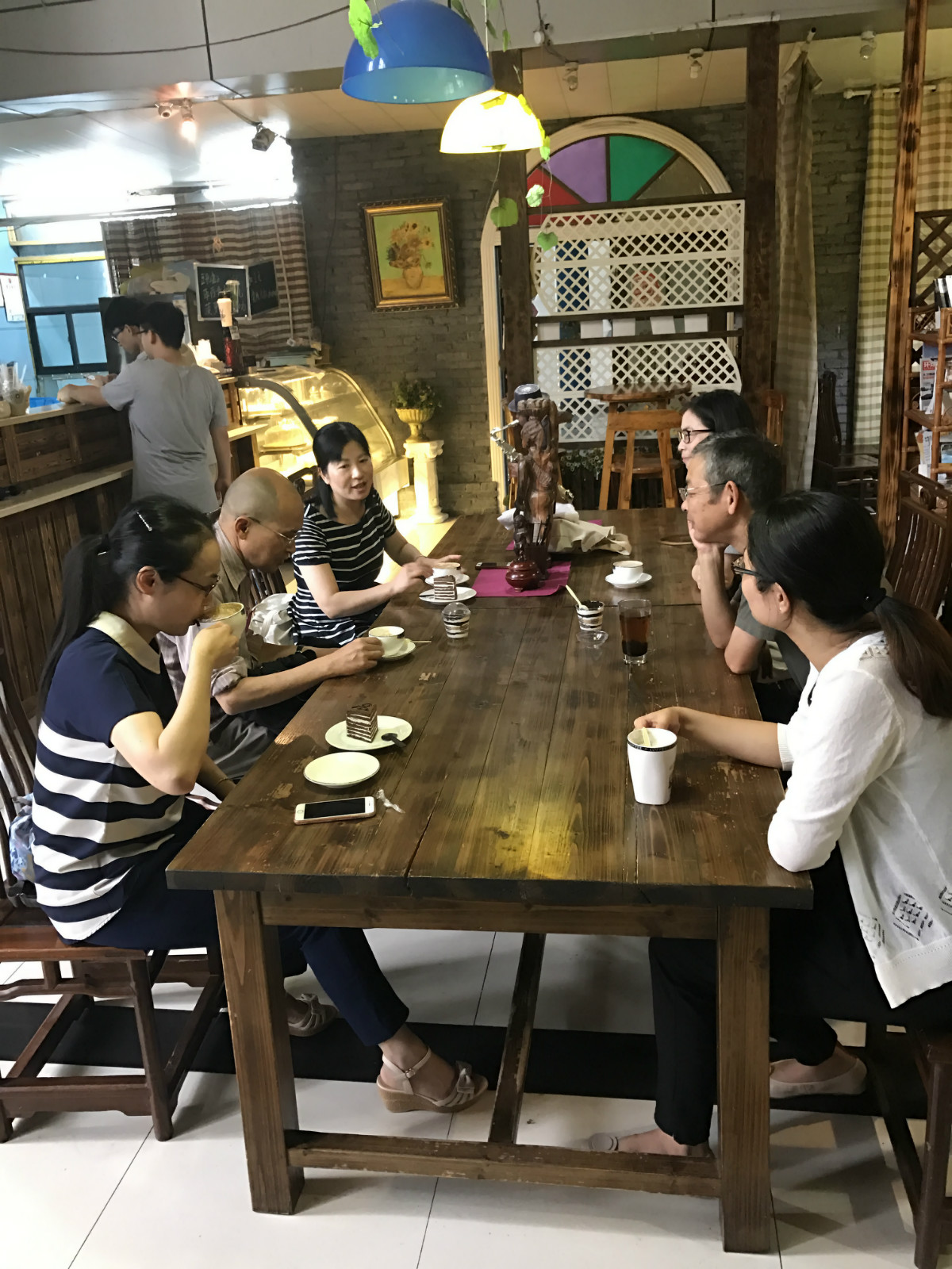 首先,徐微洁老师向两年来辛勤工作的薮老师表示了感谢。随后,薮老师和各位老师进行了轻松愉快的交谈。薮老师表达了对日语系的热爱和不舍,大家也在临别之际送上了祝福。最后,徐老师代表系里向薮老师赠送了独具中国特色的青瓷茶器,并转交了学生们制作的纪念卡片。