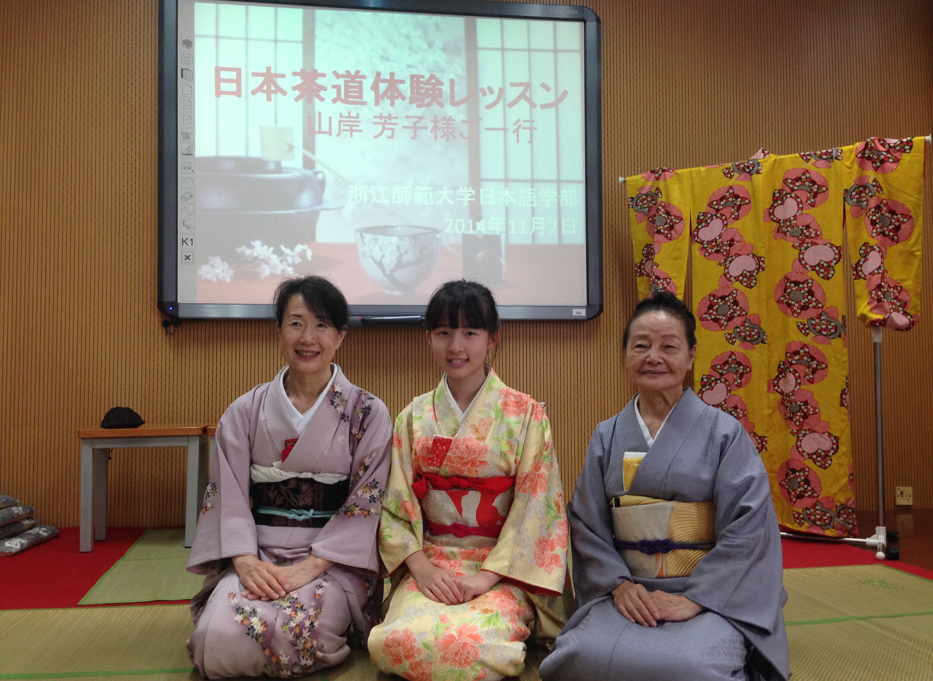 茶道、吴服专家:日本里千流茶道终生师范、正教授山岸芳子(YAMAGISHI YOSHIKO)一行三人。