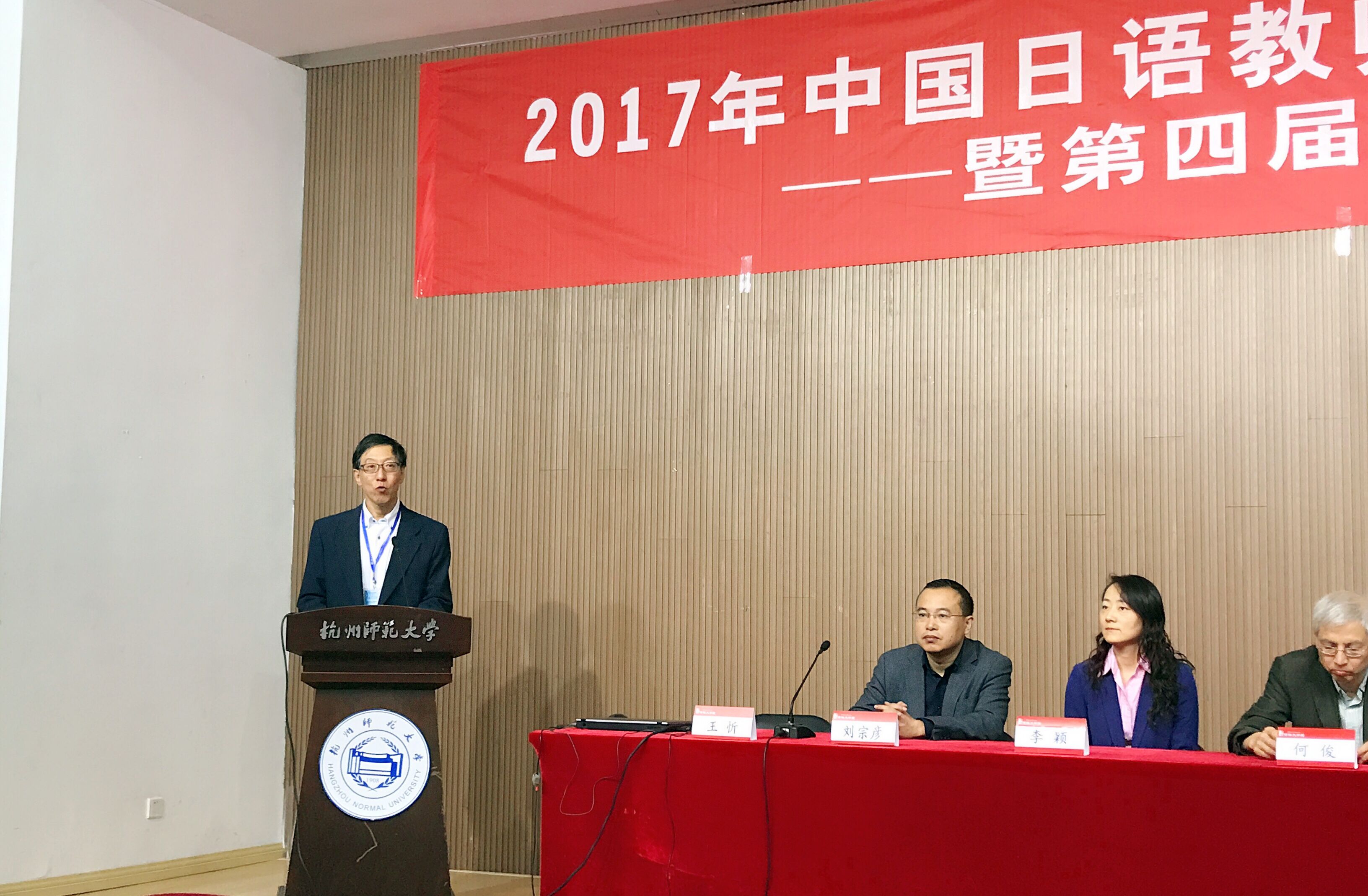 杭州师范大学副校长何俊代表学校致辞,他对前来参会的日语界国内外专家学者表示欢迎,感谢他们对杭州师范大学的大力支持,并简要介绍了杭州师范大学和日语学院的基本情况。北京大学出版社副社长兼副主编李东致辞,对大会的召开表示祝贺并介绍了北京大学出版社的概况。开幕式由杭州师范大学王忻教授主持。