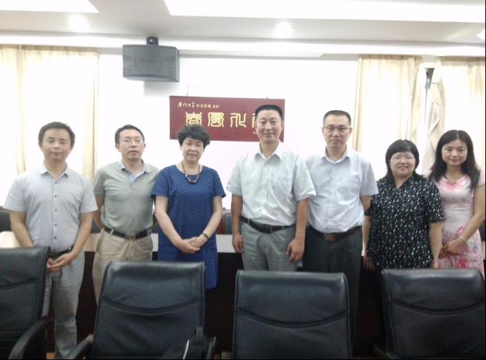 2015年6月12日,张生祥副院长带领翻译系李建军副主任、朱玲佳老师,实验室许爱娣老师,赴厦门大学外文学院进行了口译大赛经验学习、MTI人才的培养、口笔译课程建设、同传教学与面临问题等方面的交流,受到了该校外文学院陈端端副院长和英语系杨士焯主任等人的热情接待。
