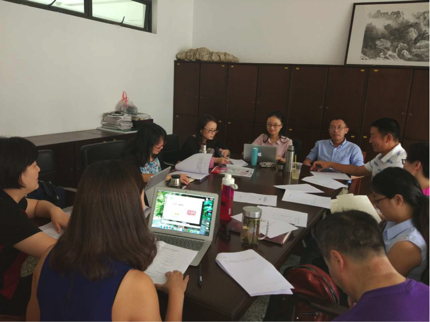 2016年9月21日下午2点,翻译系在典籍英译研究所召开本学期第一次会议,重点讨论浙江省普通高校“十三五”优势与特色专业建设项目的申报事宜。翻译系所有在岗教师全体出席,“一个没落下”