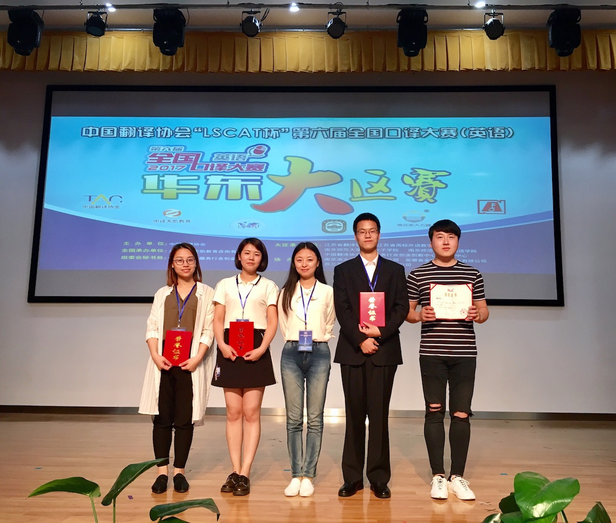 来自华东六省一市共150余名省赛晋级选手同台竞技。我院5名选手全部从省赛脱颖而出晋级大区赛:分别是MTI口译专业研一的郜溪溪、朱珊珊、辛蔚;14级翻译专业卢徐栋及15级翻译专业马志鹏。在强手如云的激烈竞争中,我院代表团取得优异成绩:卢徐栋同学斩获大区赛第8名(二等奖)的好成绩,其余四位同学均荣获三等奖。