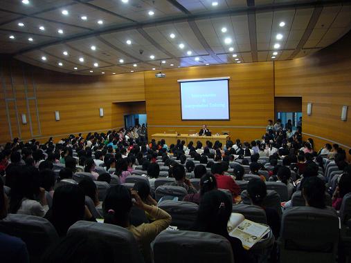 时间还不到6点,报告厅内已座无虚席,甚至连走廊与出入口空处都挤满了人。这些观众,他们来自不同学院的不同专业,有想考口译证的,有想提高口语能力的,也有纯粹热爱英语的。