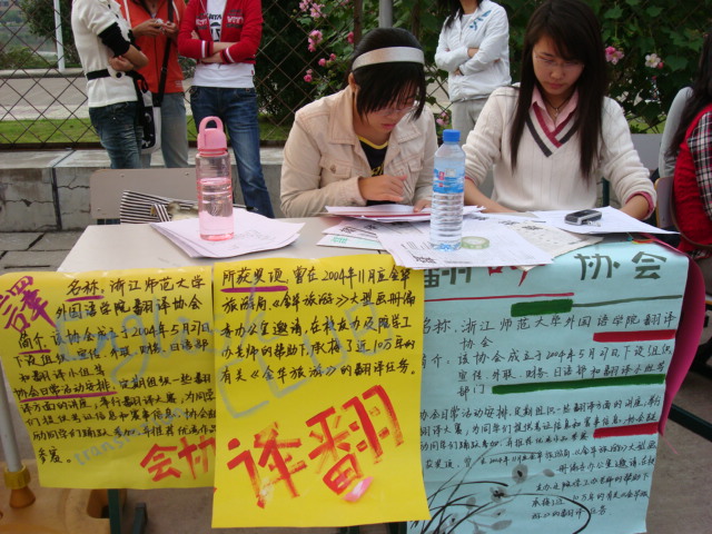 院级社团也收获不少。截止到14日早上10:20左右,女子'塑"社已有70多人报名;电影风暴营有报名者40多人;翻译协会有报名者35人;知名乐队SPRING乐队有16人报名。据相关负责人介绍,这些数据较往年相比,都有了一定的增长。我院这个社团的报名者中,主要以我院大一新生为主,但也不乏很多来自生化、行知等其他各学院的学生。而翻译协会的招新人员则表示同学们对学习英语都有很高的热忱,英语学习氛围较好。然而她也提出我院翻译专业报名翻译协会的同学并不多,希望同学们可以予以重视。