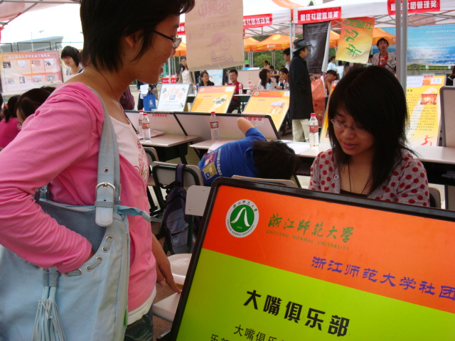 挂靠在我院的校级精品社团大嘴俱乐部和校级社团回音剧社吸引了不少同学。据了解,此次大嘴俱乐部第一天报名人数达200余人。报名者需经过英语口试才可加入。在回音剧社,演艺部(包括导演,编剧,演员等)人气较旺。同时,英文配音方面较以往报名人数也有所增加。回音剧社从13日晚在22幢已经开始第一轮面试。