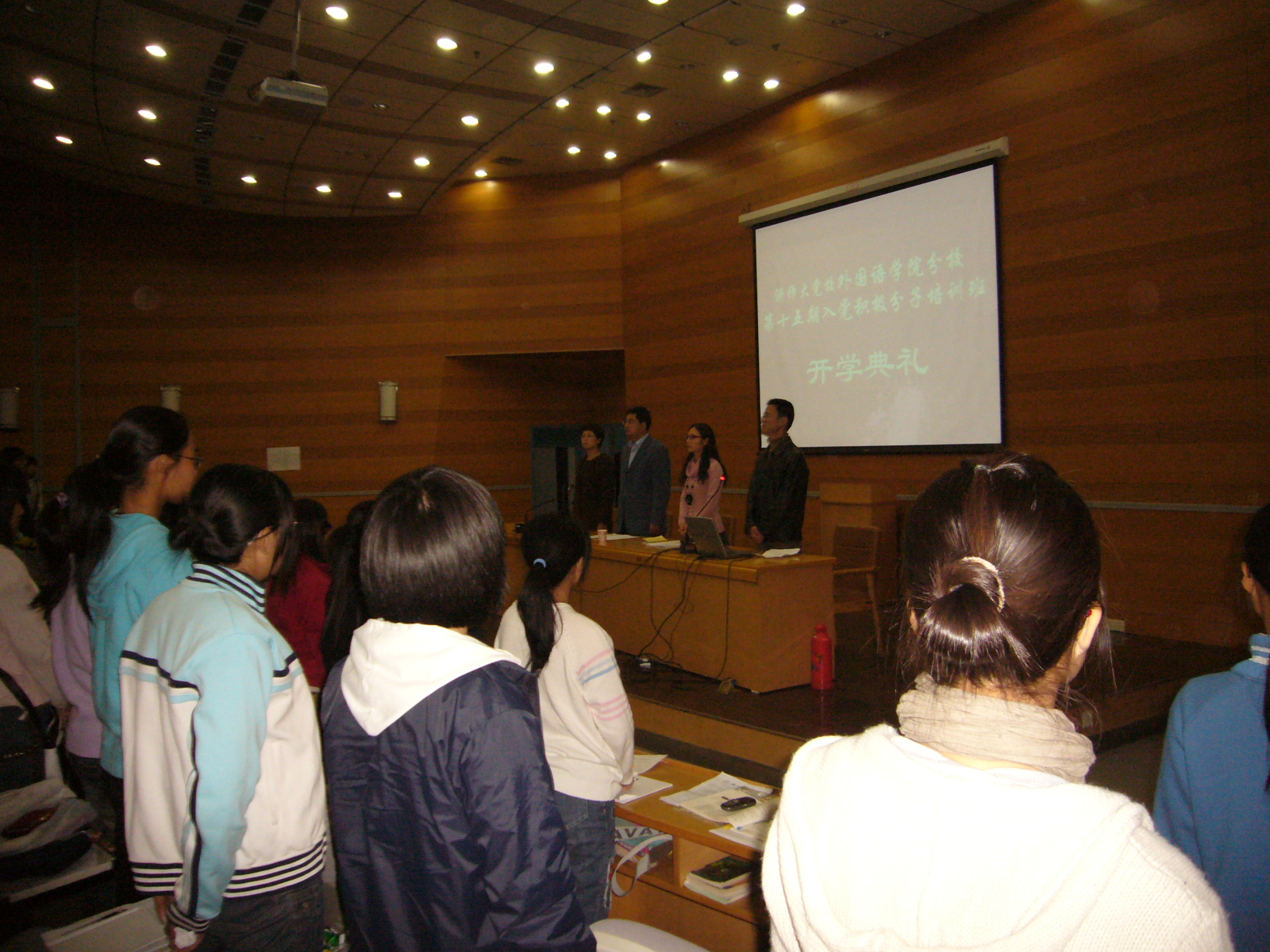 开学典礼在庄严的国际歌中拉开序幕。会上,吴婉湘老师宣读了本期入党积极分子培训班管理规定及班委名单,金挺同学作为学员代表发言,最后,院团委书记