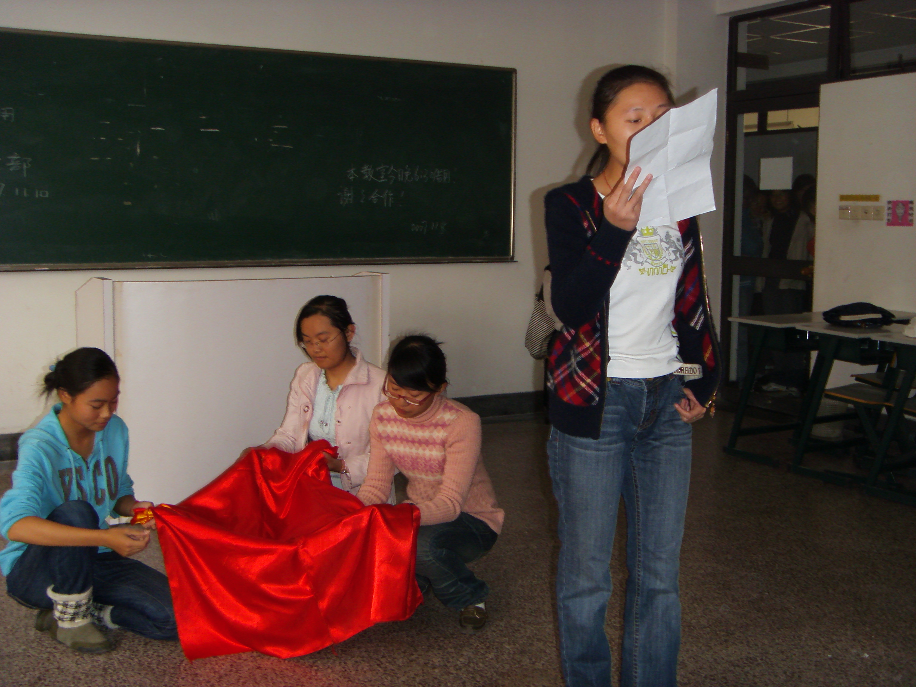 同学们有的互相交流着自己的经验,有的则紧张地进行着最后的排练,还有的则凑到了教室门口看看其他寝室的效果,现场气氛十分热烈。这次比赛大多数寝室选择了展现自己的歌喉,也有好学的寝室模仿课本对话,更不乏别具匠心的寝室表演了一段杂技。