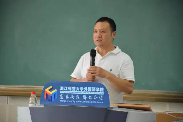 最后,俞明祥书记作总结发言,他表示6位老师的分享改变了外语课堂刻板的形象,体现了当下外语课程推陈出新、举一反三的教学模式,听后让人“很感动、很触动、很高兴、很放心”。他要求全院老师以此研讨会的成果以蓝本,全面推动外语类课程的教学改革,在课堂教学中渗透思政育人元素。教师不能只做传授书本知识的教书匠,而要成为塑造学生品格、品行、品位的“大先生”。要把知识教育同价值观教育、能力教育结合起来,把思想引导和价值观塑造融入到每一门课的教学之中。