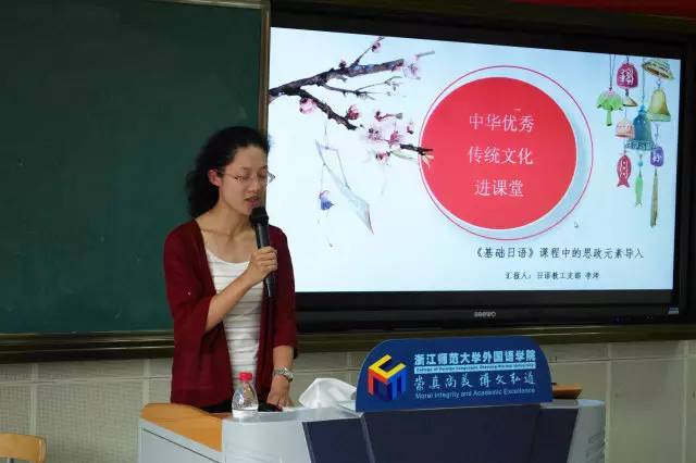 日语教工党支部李沛老师讲述了如何将思政元素导入《基础日语》课程中。日语系教师尝试根据教材内容,结合中国传统文化,将中国文化元素融入课堂。李沛老师以课文“遣唐使の会(遣唐使会)”为例,结合课文讲述唐朝文化对日本的影响,通过学生讨论,从而正视中日间的关系,增强文化自信。