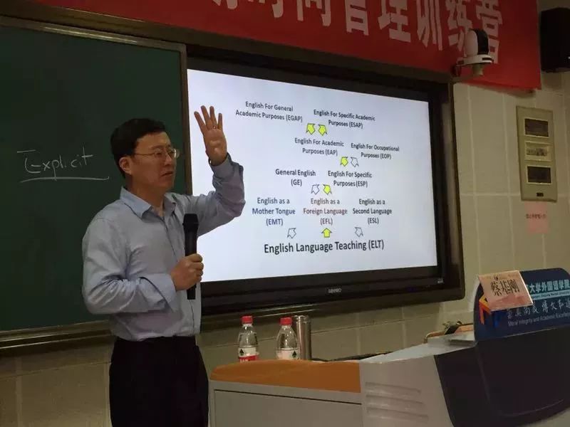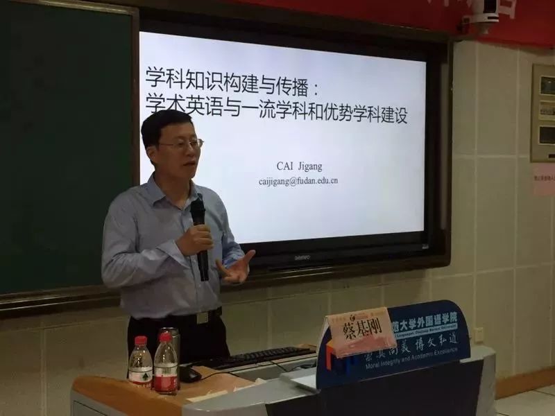 5月25日上午,复旦大学外国语言文学学院博士生导师, 复旦大学外国语言研究所副所长, 上海市高校大学英语教学指导中心主任, 全国专门用途英语教学研究会副会长、学术英语教学研究会会长蔡基刚教授莅临我院做了题为“学科知识构建与传播:学术英语与一流学科和优势学科建设”的讲座。院长洪明,大学外语部全体教师,其他系部及我校全英文课程专业老师等济济一堂,聆听了本次讲座。