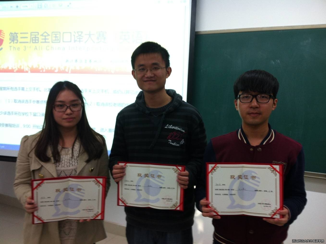 我院学子王翔力、陈笑、张鸣在第三届全国口译大赛浙江赛区比赛中获得好成绩