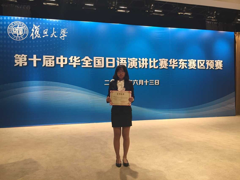 6月13日,第十届中华全国日语演讲比赛华东赛区预赛在复旦大学举行,来自江苏、浙江、江西和上海三省一市的21名优秀大学生代表参加了比赛。我校2013级日语专业郑燕燕同学发挥稳定,最终获得了优胜奖。这也是日语系学子连续4年在该项赛事中获奖。