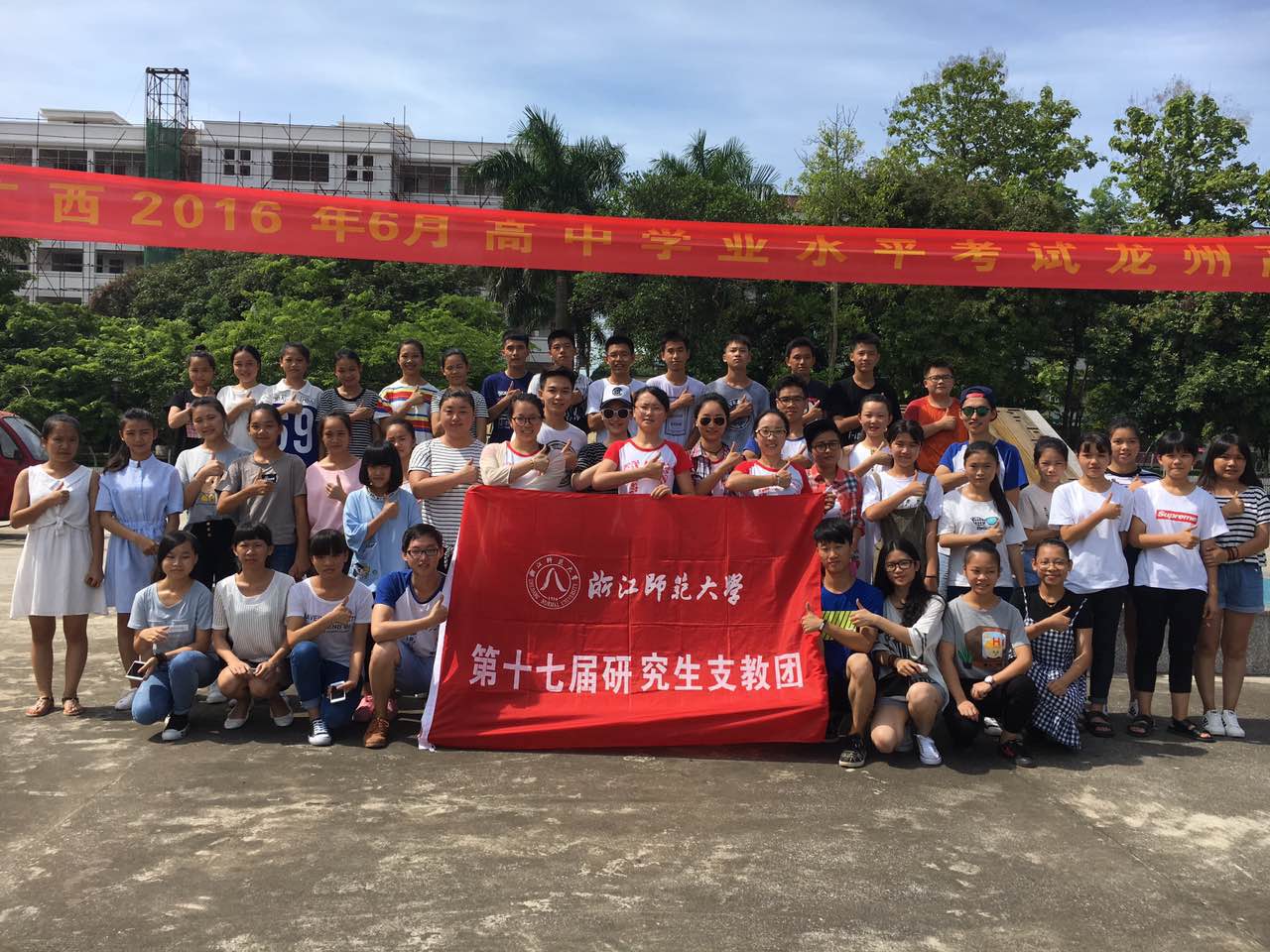 经过南宁短暂的3天全国西部计划志愿者培训后,2016年7月30日,我来到广西壮族自治区崇左市龙州县高级中学,校团委邓敏老师和严冬芳老师热情地接待了我们。我和其他3名队员在龙高的2号宿舍楼4楼落了脚,组成了“英地史之家”:改装的厨房和线路,没有门窗的卫生间,几张破旧课桌拼凑起的办公桌和餐桌……略显简陋的起居条件,并没有减少我们的热情,因为这本来就是支教之旅,其实这里的生活条件远比我们想象中的好。就这样,轰轰烈烈的支教大幕,徐徐拉开了!