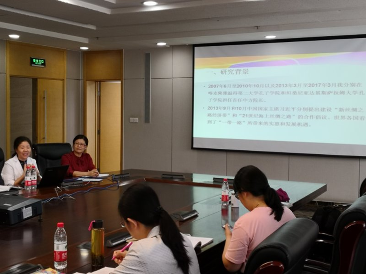 我院郑晓红副教授率领其学术团队在本次国际论坛上做非洲来华留学生的文化适应专题讨论。郑晓红老师主持了该专题,她结合我校非洲研究优势,组织学术团队对非洲来华留学生的跨文化适应进行了先导研究,并做了题为“撒哈拉南部非洲国家来华留学生跨文化适应情况研究:以浙江师范大学为例”的发言,并专门介绍了撒哈拉南部非洲国家来华留学生对中国文化的认知与适应。她认为随着“一带一路”倡议的容易落地与深化,“民心相通”的作用和意义日益彰显,来华留学生在中国的文化适应及其中国印象有助于对非讲述中国故事,传递中国声音。我校汉办副主任张笑贞副教授和经管学院副教授祝亚雄博士在郑老师组织的专题讨论中分别汇报了坦桑尼亚和喀麦隆在华留学生在浙江师范大学的跨文化适应和学术文化适应情况,引起与会者的积极关注。